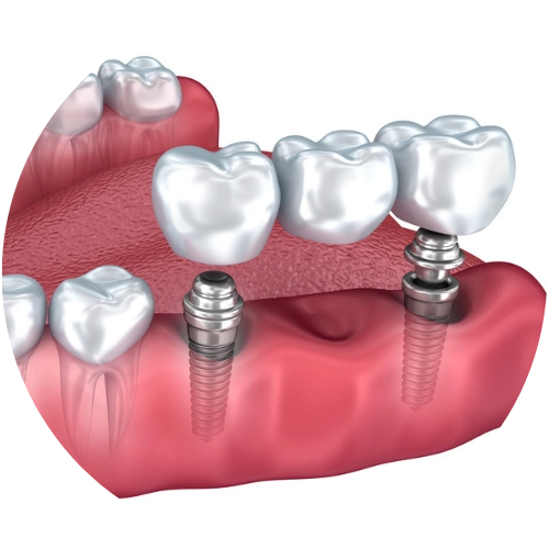 A dental bridge can also be anchored between two implants, leaving you feeling secure with your smile.